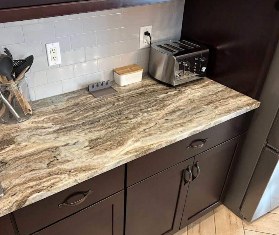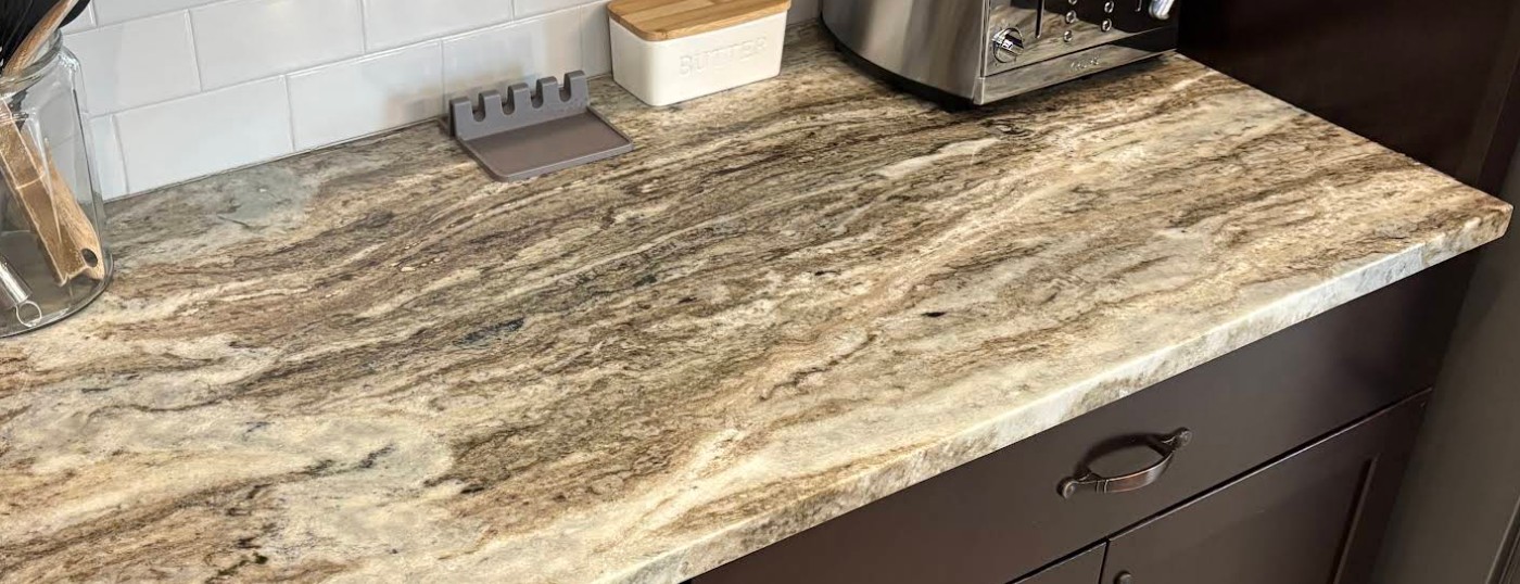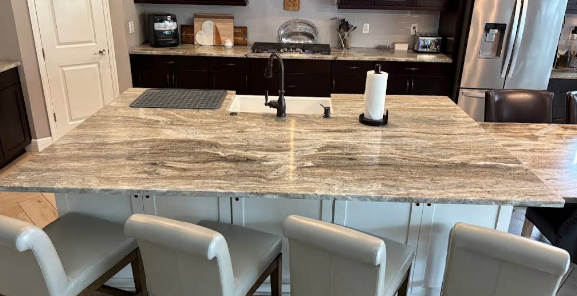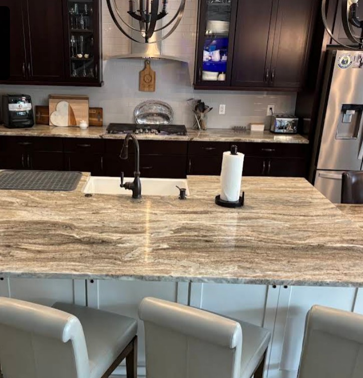 Imagine transforming your kitchen into the heart of your home with a custom countertop system that not only enhances your culinary adventures but also elevates your entertaining experience. Nathan (the founder, owner and principal of Rock Solid Granite & Marble) meticulously designed multiple countertop surfaces and managed the entire process of creating a stunning kitchen centerpiece from a remarkable raw slab of Brown Fantasy Dolomite.